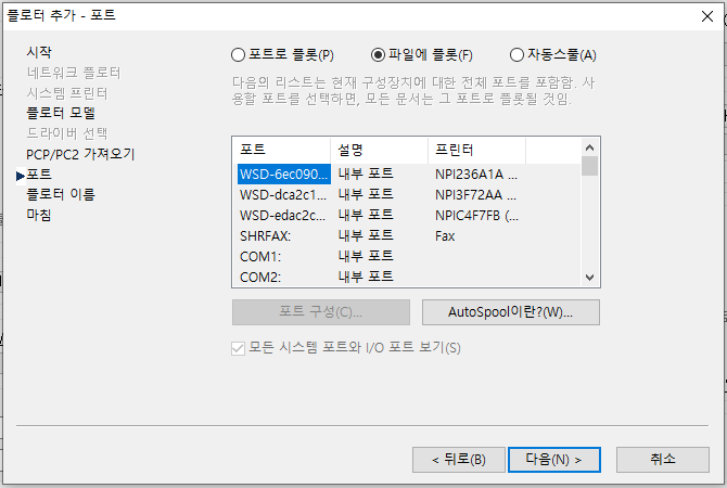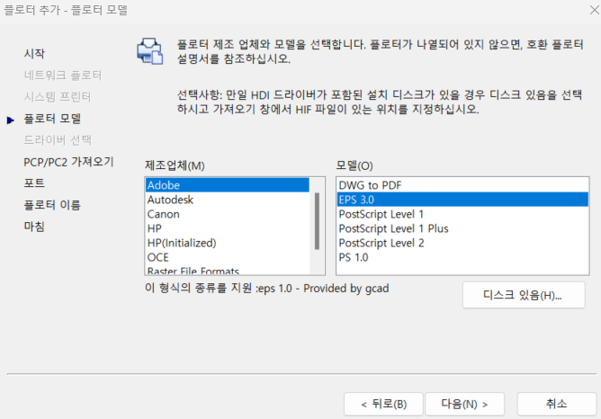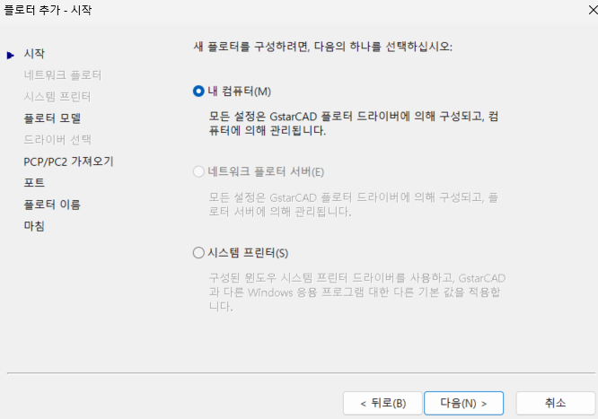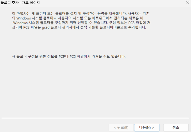 아래의 방법을 통하여 출력 시 사용할 프린터/플로터를 추가할 수 있습니다.
