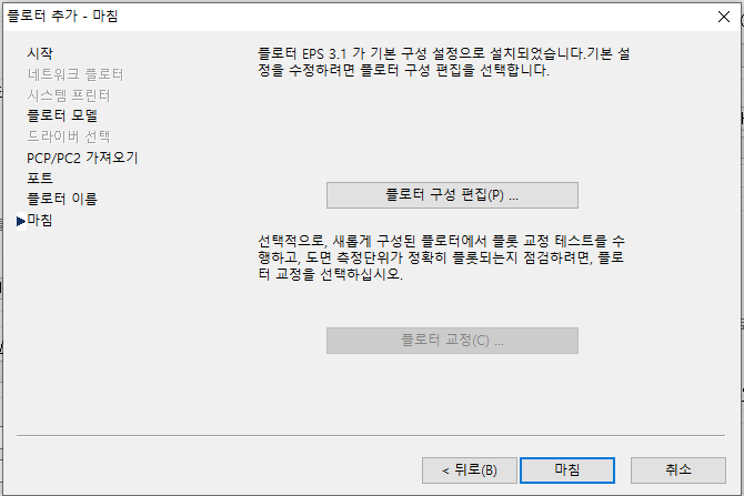 9. 기본 구성 설정을 편집하려면 [플로터 구성 편집] 을 선택하여 편집 후 [마침]을 클릭하여 플로터 추가를 종료합니다.
