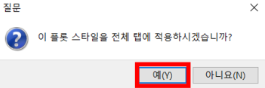 3. [이 플롯 스타일을 전체 탭에 적용하시겠습니까?] 라는 질문이 나오면 [예] 를 클릭해 줍니다.